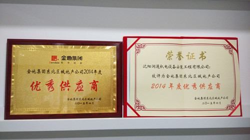 喜賀沈陽(yáng)潤(rùn)通機(jī)電設(shè)備安裝工程有限公司被評(píng)為金地集團(tuán)東北區(qū)域地產(chǎn)公司2014年度優(yōu)秀供應(yīng)商,這不僅說明潤(rùn)通得到了市場(chǎng)的認(rèn)可,更印證了我們的努力是值得的。我們執(zhí)業(yè)以心,為您雕琢傳世精品;我們執(zhí)業(yè)以信,與您攜手共贏!