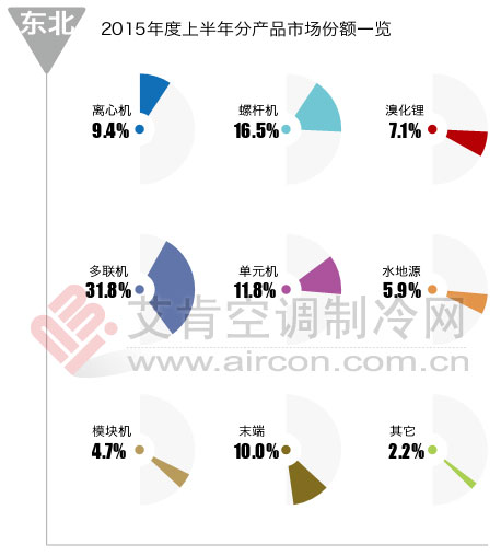 依靠大項目撐起整體銷量,中小項目零散的特點的東北市場。2015上半年大項目并不如人意,國家招標項目的減少,使得離心機、螺桿機等水系統(tǒng)產品均出現不同程度的下滑。