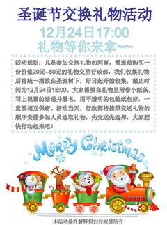 2015年12月24日公司舉辦圣誕節(jié)交換禮物活動(dòng),員工們把用心準(zhǔn)備的禮物與滿滿的祝福精美包裝后放到圣誕樹下,互換禮物、互領(lǐng)心意,愿拆開禮物:新年新氣象,好時(shí)好心情!